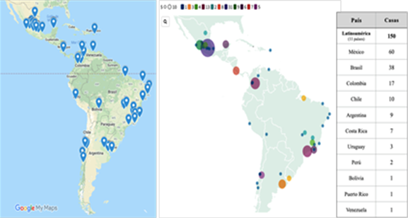 En el mapa de puntos, el círculo más grande corresponde a la Ciudad de México, que indica la mayor densidad de casas en el continente con la existencia de 31 Houses activas, seguida por la ciudad de Bogotá, Colombia y São Paulo, en Brasil con 13 casas de Vogue cada una. El registro más antiguo de nacimiento de una casa se ubica en Brasil, en el año 2009, esto quiere decir que el inicio de cultura Ballroom en América Latina se da en este país. A simple vista, este hecho parece encontrar vasos comunicantes con la centralidad que, en la cultura brasileña, tiene el cuerpo. Brasil es el país que ocupa el lugar más alto en el número de carnavales celebrados anualmente. En la cultura Ballroom tanto las corporalidades disidentes y su celebración como la confección de atuendos, son actores que polinizan y hacen posible la reproducción de sus rituales.